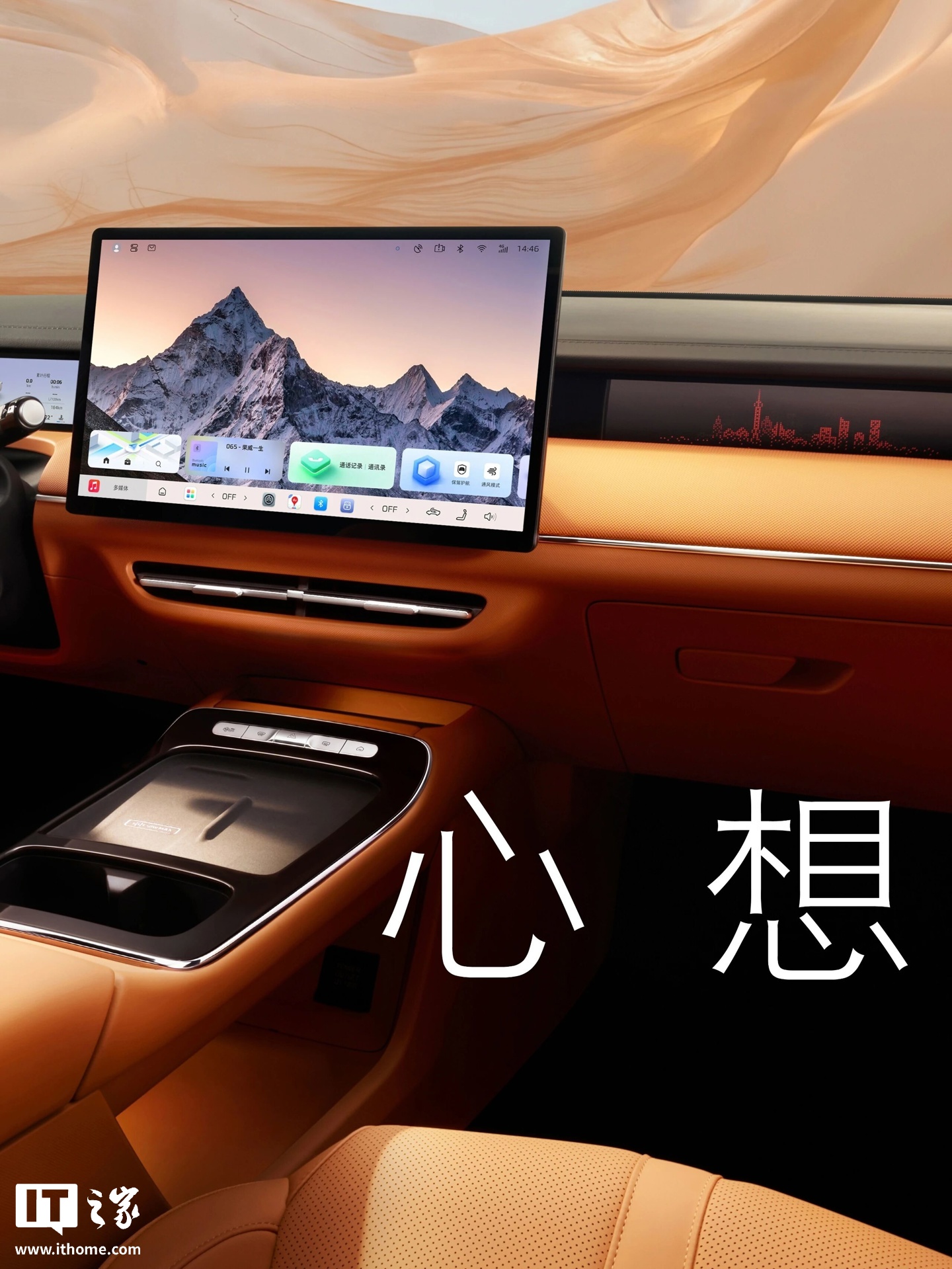 座舱方面,新车搭载 15.6 英寸 2.5K 中控屏,配备高通骁龙 8155 车载芯片。前排座椅集成电动调节、通风与加热,从门板至中控提供 9.86m² 大面积软包。此外,该车还在中控屏下方提供了复式储物空间。