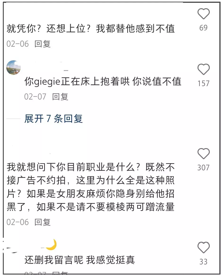 由于林俊杰暧昧的态度,导致女方遭遇了一轮又一轮的攻击,过往拍摄的一些照片被翻出,诋毁侮辱言论不断,迫使女方不得不锁了外网社媒账号。而女方的内网社媒账号则停更在2月,也就是林俊杰恋情初次被扒时,相关账号评论区都是攻击声音。