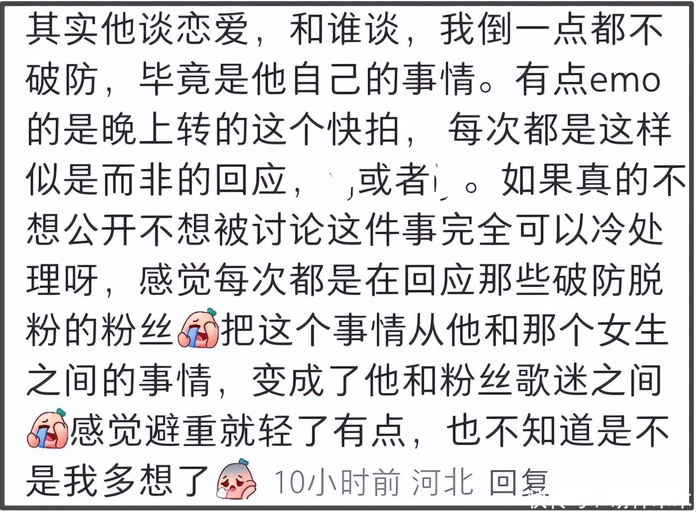 相较于胡彦斌机场大方认爱,林俊杰避重就轻的回应更让人下头,不少粉丝表示不介意恋爱,但是似是而非的回应总是模糊焦点,把与女友的问题变成与粉丝的矛盾,吐槽他若不想公开不想回应可以冷处理,而不是一天又一天的挑衅。