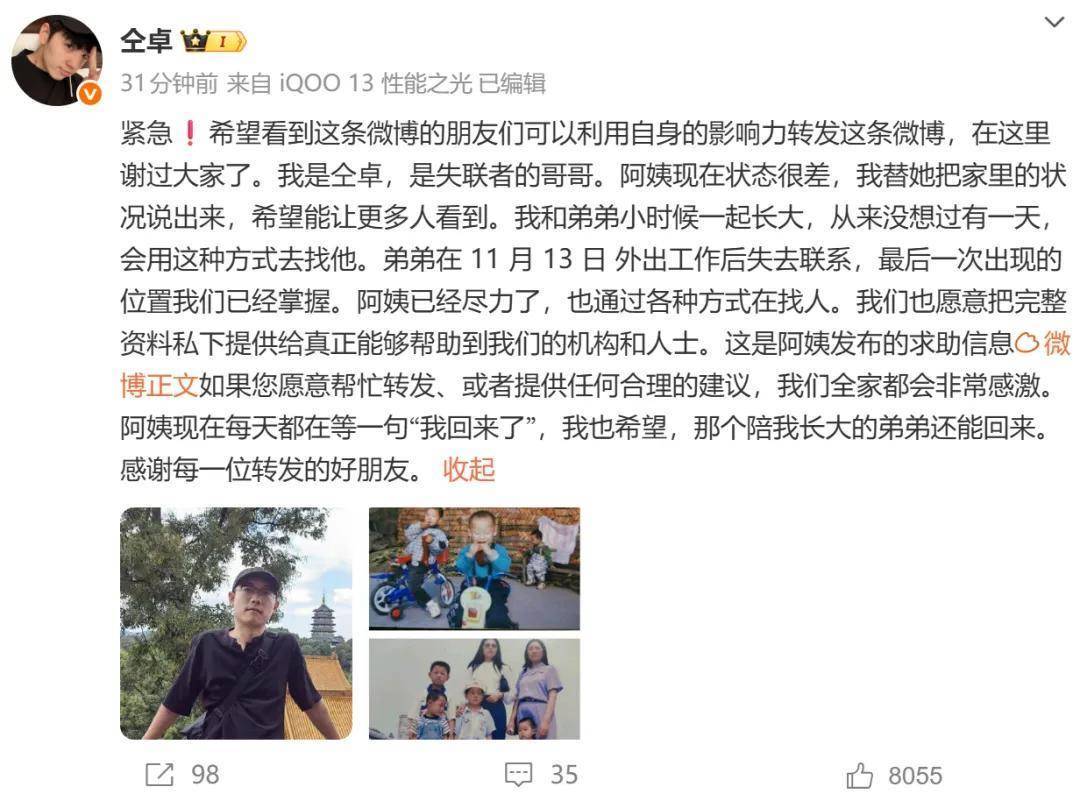 11月26日,记者从亲属处获悉,此前在柬埔寨失联的中国歌手仝卓表弟李怡亨已从园区被解救。25日,歌手仝卓在社交媒体发文称,他表弟被骗至柬埔寨失联十余日。(此前消息:演员仝卓发文求助称表弟在柬埔寨失联股天下配资官网,失联者母亲是单亲妈妈)