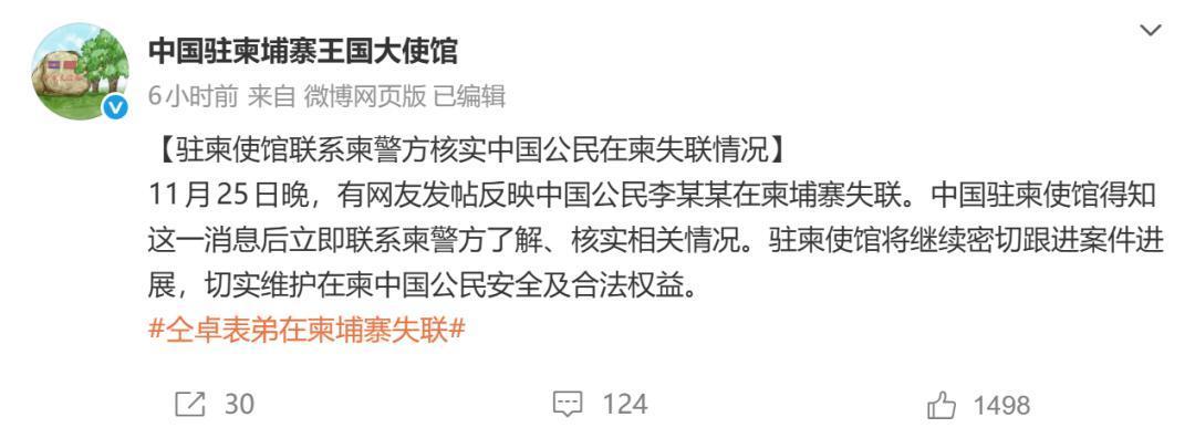更多详细报道请点击 ➤时刻新闻来源:综合新京报、潇湘晨报、@仝卓、@中国驻柬埔寨王国大使馆举报/反馈