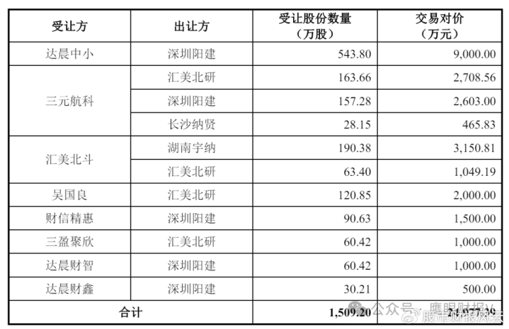 2025年3月,北斗院进行了一次股权转让,公司股东深圳阳建、汇美北研、湖南宇纳、长沙纳贤与达晨中小、三元航科、汇美北斗、吴国良、财信精惠、三盈聚欣、达晨财智、达晨财鑫签订《股份转让协议》,出让方将其所持全部/部分公司股份转让给受让方。