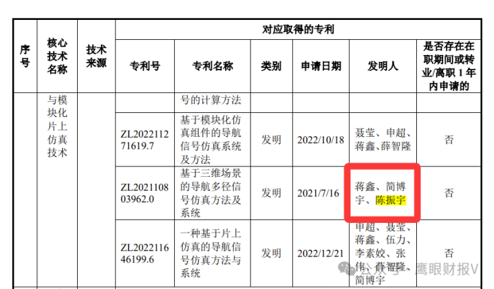 作为号称"北斗安全国家队"的企业,核心技术团队却藏着玄机。2023年9月9日挂网的一询回复函显示,两项核心专利的第一发明人陈振宇,既不是核心技术人员,也不在员工持股平台名单里,在2023年5月30与2025年11月21日分别挂网的招股书中通篇没“陈振宇”,这操作堪比武侠小说里的"扫地僧"——平时不见人,关键时候突然冒出来领功劳。